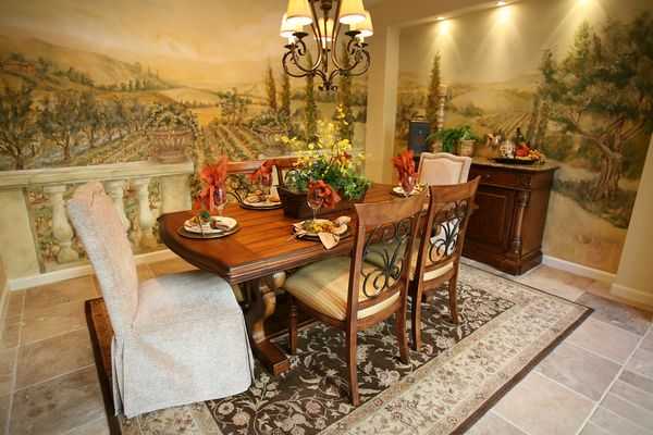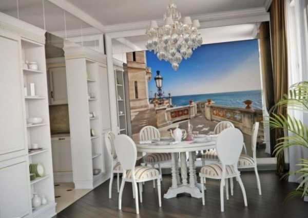 Фотообои в столовой зоне, выполненной в классическом стилеФотообои в разных стилях интерьера