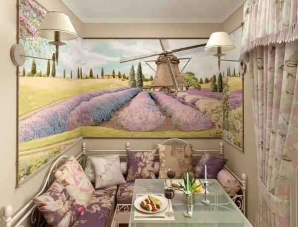 Как и во всем стиле прованс, каждая его часть, в том числе и фотообои должны наполнять кухню легкостью, простором, беззаботностью.