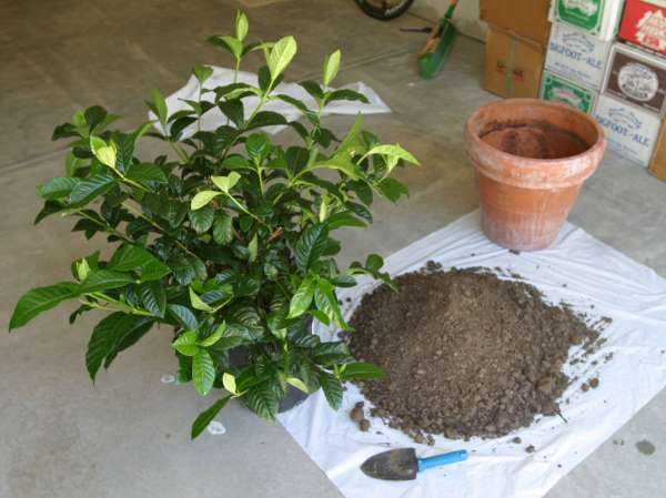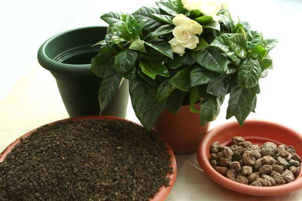 В новый горшок предварительно укладывают слой дренажа из камешков, керамзита или других пригодных для этого материалов. После чего насыпают почвосмесь и поливают ее, а потом ставят в горшок гардению вместе с комом земли, выравнивают, утрамбовывают и поливают еще раз.