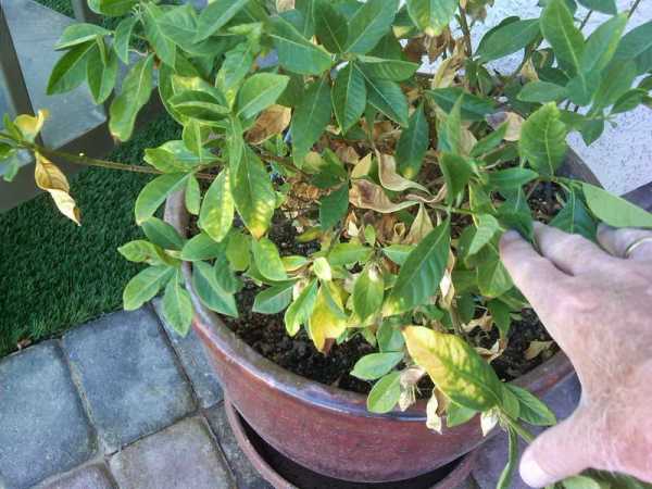 - Почва перекислена. Подкиснять землю для гардении полезно, но ни в коем случае нельзя переборщить. Подкислять почву не чаще 1 раза в месяц, а для подкисления будет довольно 2−3 капли лимона на 1 л. воды.