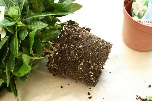 Пересадка гардении после покупкиСовет! Опытные цветоводы советую при пересадке производить щадящую обрезку корневой системы. Так она быстрее восстанавливается.