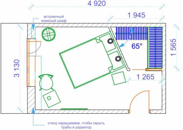 Планировка гардеробной комнаты на 2 кв. м