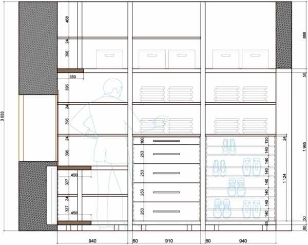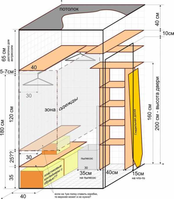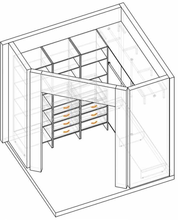 - планировка делается таким образом, чтобы человек имел свободный доступ к любому участку комнаты, чтобы не возникало проблем в процессе выбора одежды;