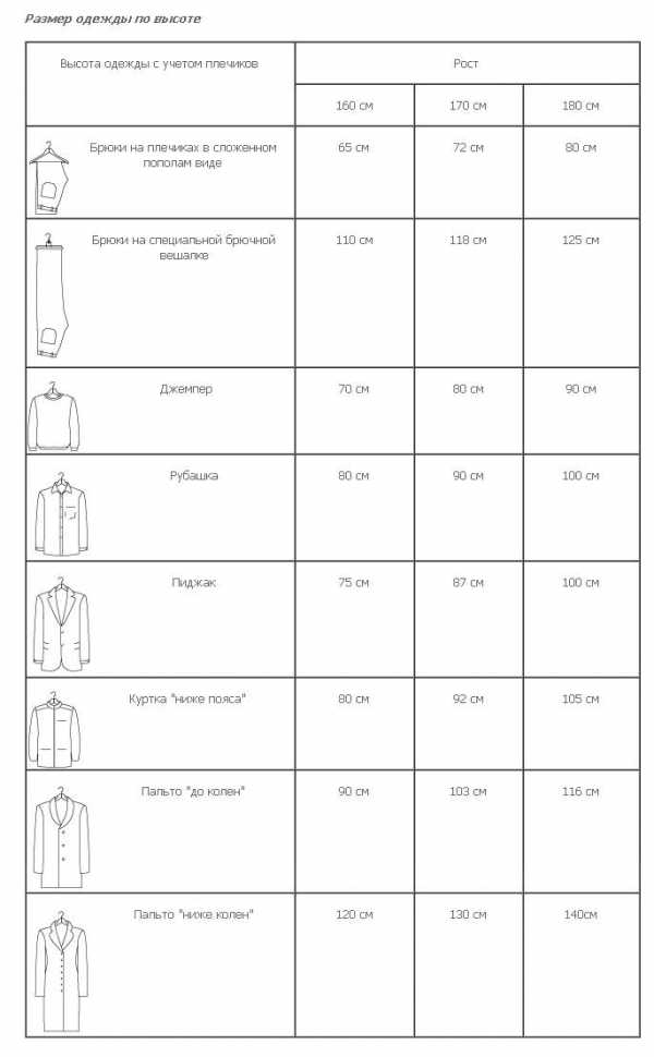 Таблица примерных размеров одежды по высоте