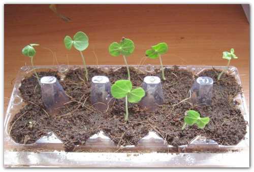 Для этого в сосуд насыпается почвенная смесь, содержащая равную долю песка и торфа. Для быстрейшего прорастания семян потребуется не только поддержание высокой температуры в помещении (не ниже 25 градусов), но и наличие нижнего подогрева почвы. Сеянцы потребуется периодически проветривать и опрыскивать.