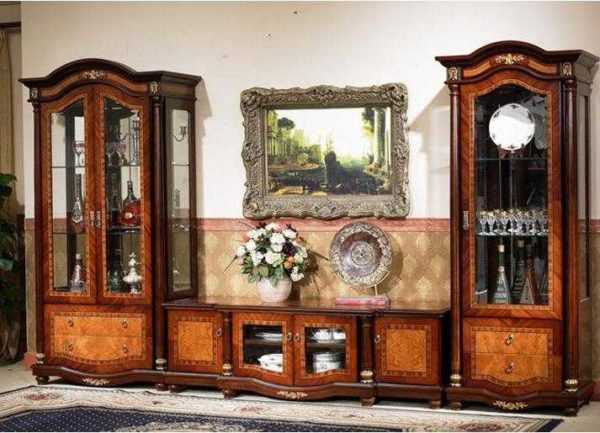 В нижних секциях располагаются закрытые шкафчики или ящики, которые выдвигаются. Их может быть три и больше. Верхняя часть – это одна секция, с трех сторон застекленная, она же и хранилище, и витрина. Классическая горка имеет в верхней части резные высокие украшения. В отличие от стенки горка имеет разную высоту входящих в нее предметов.