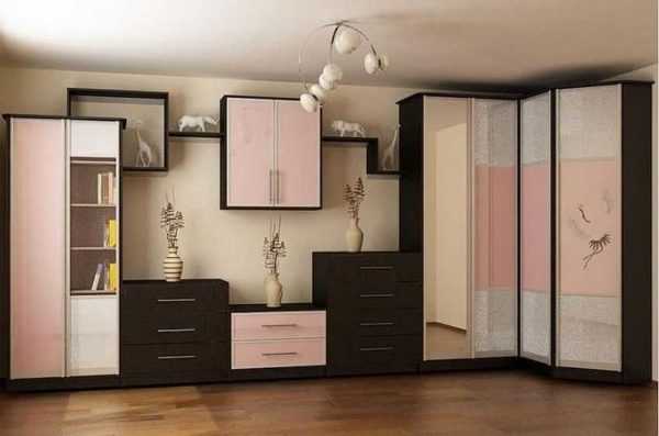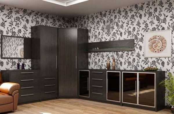 - Угловая. Неплохой вариант для маленьких помещений или если все желаемое на одну стенку не помещается.