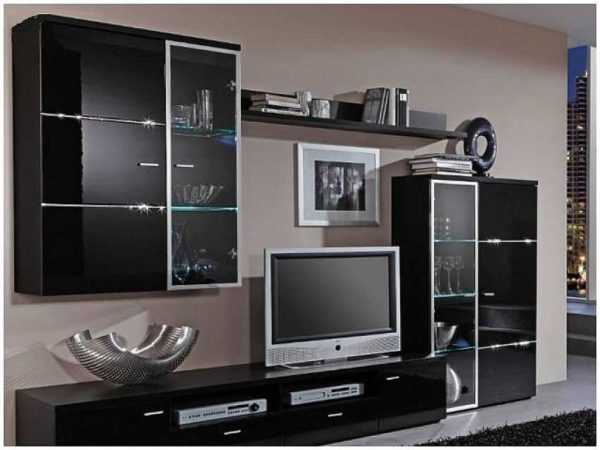 - Черный. Он очень холодный цвет, в большом количестве может вызывать тревожность. Но в качестве акцента отлично гармонизирует интерьер. Если в вашей гостиной стены и остальная мебель очень светлые, черная стенка горка замечательно впишется, создав контраст.