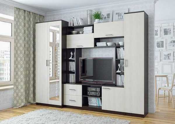 Крохотные ансамбли тумбочек и антресолей могут принимать формы классического прямоугольника или лесенки и иметь разнообразный функционал в зависимости от потребностей покупателя. К примеру, наряду со стандартными ящиками в стенке может присутствовать скромная этажерка для дисков, полочка для сувениров или даже выемка под небольшое зеркало. Все вместе это смотрится весьма привлекательно, а стоит дешевле классических шифоньеров. Кроме того, изделия современных производителей нередко лишены нависающих над ними антресолей, что делает конструкции легкими и воздушными на вид. Убедиться в этом можно, взглянув на фото стенок для зала.