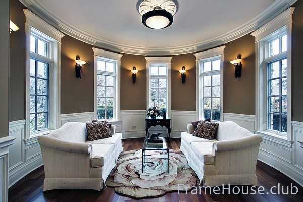 Если первый подходит для помещений, характеризующихся высокими потолками и большой площадью, то светлый вариант – идеальное решение для небольшой гостиной. После этого можно выбрать украшение для стен.