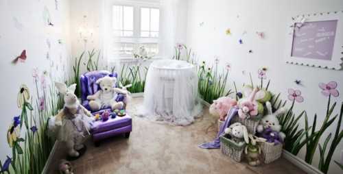 Яркие бумажные бабочки на стене в комбинации с яркими картинками украсят комнату девочки