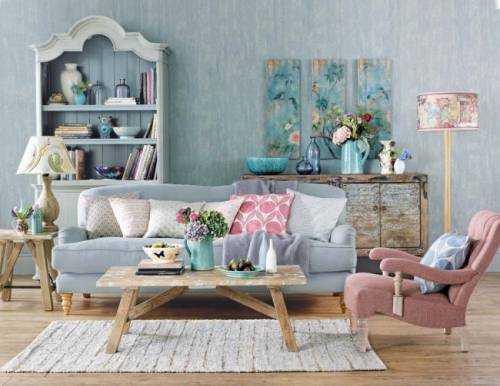 Эти общие черты стиля прованс можно смело применить и при декорировании стен. Самым простым вариантом декорирования стен является их оклеивание однотонными обоями, выдержанными в пастельной гамме.