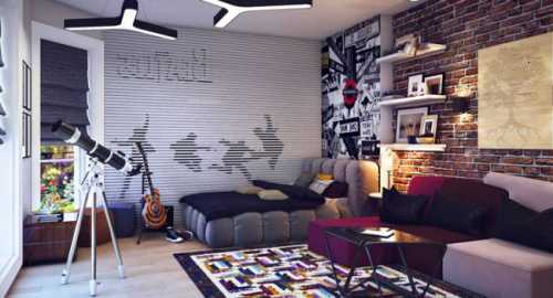 Комнату мальчика-подростка можно украсить постерам или граффити