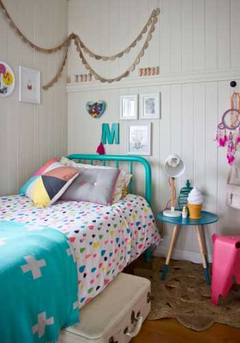 Яркие пятна акцентного декора создают игривое настроение. Пример того, как украсить комнату своими руками с присущими элементами ярких оригинальных акцентов, это комната для ребенка, или детская.