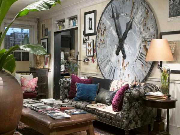Нередко в качестве декоративного элемента гостиной используют часы, моделей и разновидностей которых очень много. Такая деталь в гостиной всегда притягивает взгляд, а значит, должна быть подобрана со вкусом. Настенные, настольные, напольные или часы-картины могут стильно украсить интерьер.
