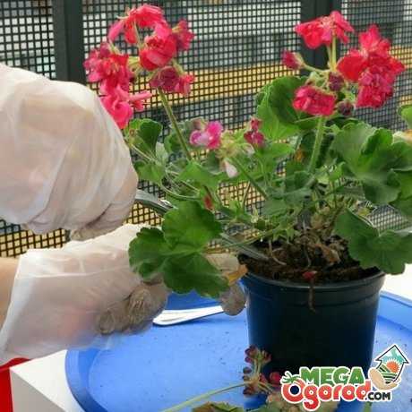 Бегонию необходимо извлечь из горшка вместе с земляным комом и осторожно (можно при помощи небольшой тонкой палочки) освободить корневую часть от земли. Растение должно некоторое время постоять в слабом марганцовом растворе (только его корневая часть), а затем необходимо избавиться от поврежденных или подгнивших частей корня при помощи острого ножа. Обрезке подлежат все мелкие запутанные в комок корешки, а также заболевшие части крупных корней. Места срезов рекомендуется присыпать толченым активированным или древесным углем.