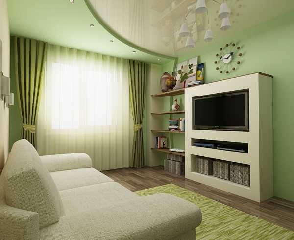 Дизайн гостиной с белым потолкомНатяжные потолки могут быть нескольких видов: