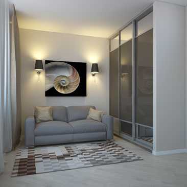 - Место для хранения вещей. Можно поставить комод, но всё же лучше выбрать шкаф, в нём размещать одежду гораздо удобнее. Не стоит выбирать громоздкую модель, идеальным вариантом будет вместительный и компактный шкаф-купе. Кстати, хранить в нём свои или ненужные вещи не стоит, это может смутить гостей.