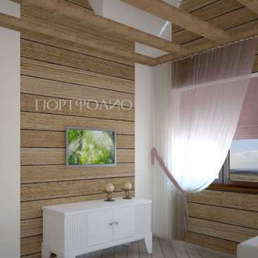 Интерьер гостевой комнаты с отделкой стен деревом