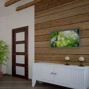 - Настенные панели. Изготавливаются из натуральной древесины, пластика, ДВП или МДФ, настоящей или искусственной кожи, текстиля, стекла с зеркальной поверхностью. Панели позволяют скрыть недостатки на стенах. Если комбинировать несколько видов материалов (например, разбавив деревянные панели зеркальными вставками), можно создать уникальный дизайн.