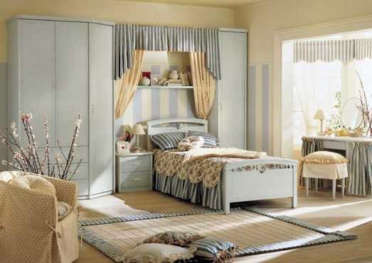 - В минимальный мебельный набор входят кровать, шкаф, тумбочка (туалетный столик) или комод с зеркалом. В помещениях посвободнее этот комплект можно дополнить полками с книгами, креслом и даже камином для особого уюта. В небольших комнатах возможно стоит задуматься о многофункциональной мебели для экономии пространства.