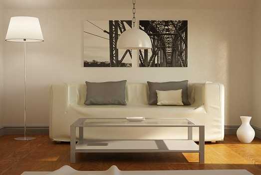 - Диван. Он должен быть красивым, удобным и соответствовать стилю интерьера. Размер дивана зависит от количества людей, проживающих в доме, и количества гостей, которые приходят регулярно. Среднестатистической семье хватает трёхместного дивана. Если позволяет площадь гостиной, можно установить два дивана или один, но с четырьмя и более посадочными местами.