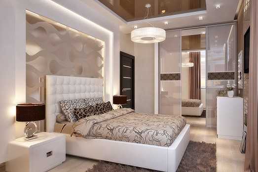 Кроме центральной люстры сделайте дополнительное освещение – точечные светильники, вмонтированные в потолок, прикроватные светильники, торшеры. Можно сделать регулятор яркости потолочного света.