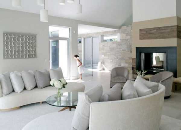 Интерьер гостиной в частном доме в светлых тонахВыбор материала для оформления стен