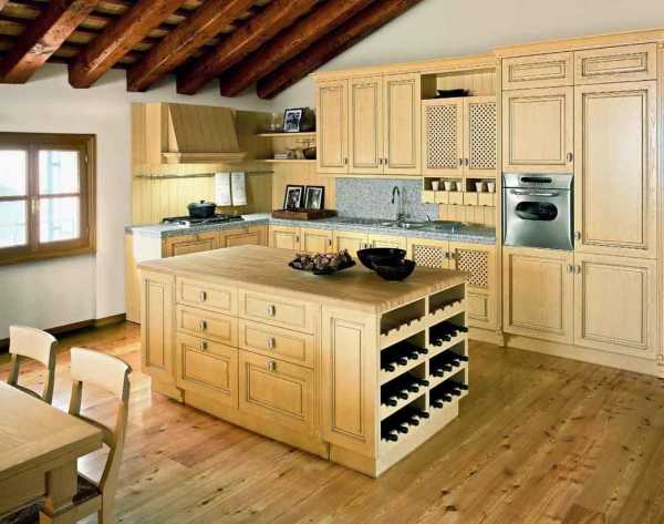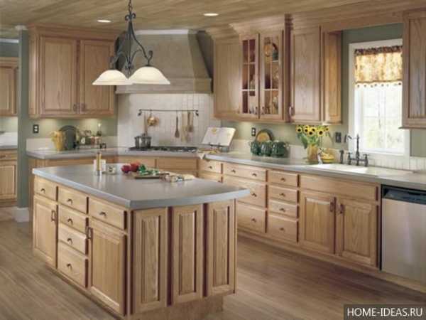 Отдайте предпочтение прямым формам, дайте проявиться фактуре дерева, не усложняйте дизайн фасадов, чем проще, тем лучше, ведь на кухне гарнитур занимает больше всего места, значит это основной сектор, который должен быть выдержан в абсолютном стиле.