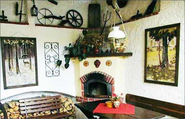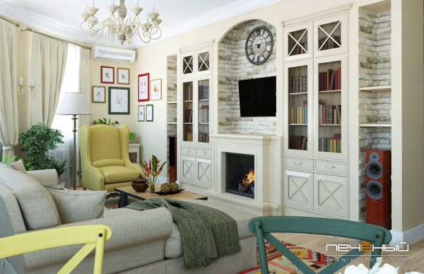 Если позволяет место, обязательно устанавливается камин, достаточно даже простенького электрического «псевдокамина — имитации», который радует глаз и создаёт иллюзию домашнего очага.