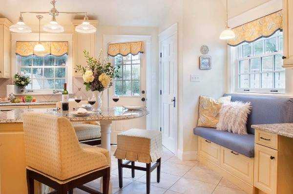 круглый стол на кухне уютная кухня светлая кухняГде применяют стиль кантри?