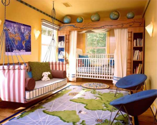 Если комнату оформить в стиле путешествий, то в ней будут преобладать нейтральные оттенки, например желтые, бежевые, голубые, зеленые. В качестве декора можно использовать большие растения, аквариум, фотообои с изображениями природы, животных.