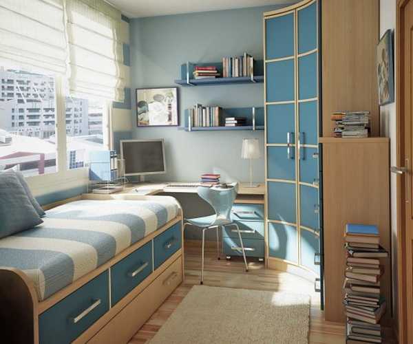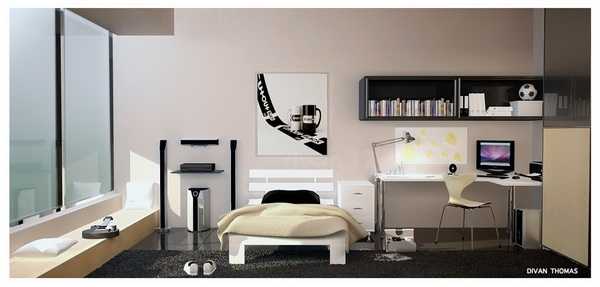 Стиль можно выбрать любой, но все в комнате должно быть четко распланировано, поделено на зоны, где обязательно должны присутствовать зона отдыха, зона хранения вещей и рабочее место.