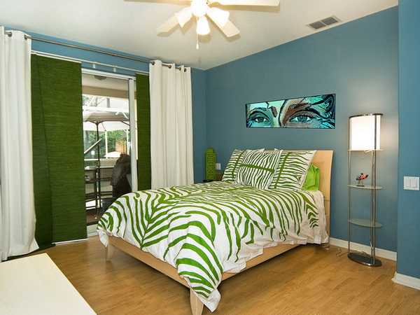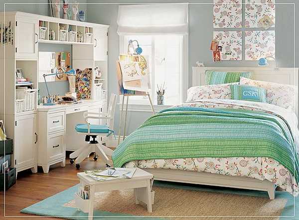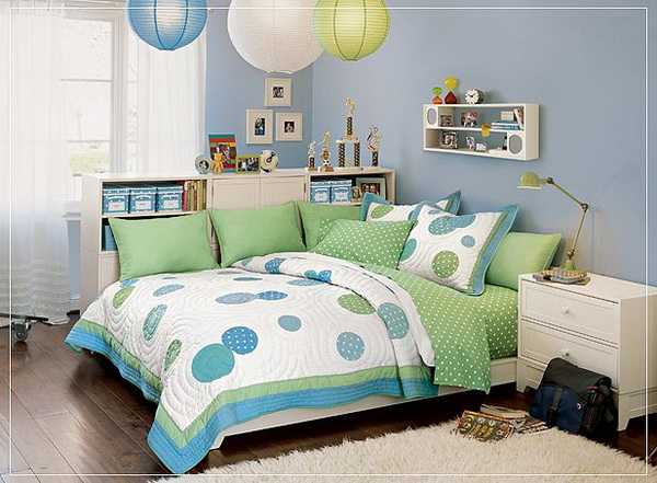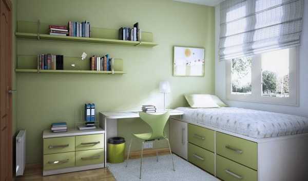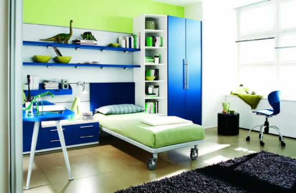 Кроме синего, очень популярен зеленый цвет для оформления комнаты подроста, который способен успокаивать, концентрировать.