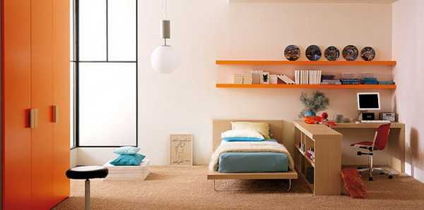 Если подросток хочет яркие насыщенные оттенки, то это вполне допустимо, только использовать их можно либо для стен, либо для мебели. Что-то одно (стены, мебель) должно быть выполнено в спокойной цветовой гамме.