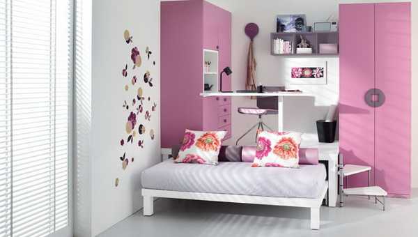 Лучше оставить минимальный проход, но установить полноразмерную тахту, позволяющую удобно спать. В этом возрасте интерьер комнаты складывается не из мебели и обоев, а из мелочей, дорогих сердцу самого ребенка самостоятельно. Как правило, это постеры, «фенечки», поделки, сделанные собственными руками, журналы и сувениры. Короче, всякая ерунда с точки зрения взрослого.