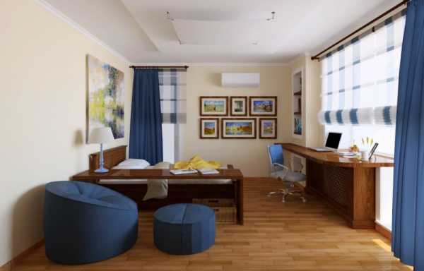 Если комната по габаритам не позволяет разместить в ней два шкафа, две кровати, два стола, то комнату можно оптимизировать. Например, кровать может быть двухъярусной, шкаф тоже может быть один но большой и вместительный, с обязательным распределением полок. Два стола длиной по 1 м можно с успехом заменить одним более длинным, где смогут заниматься одновременно оба ребенка.