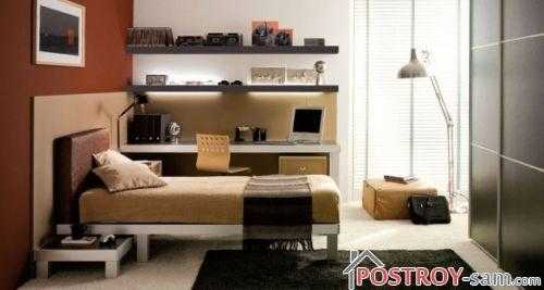 Если подростковая комната небольших размеров, то необходимо заранее подумать какие предметы мебели (стол, кровать, шкаф, полки) можно совместить, что заказать небольшого размера, чтобы в результате получилась уютная комната для мальчика-подростка.
