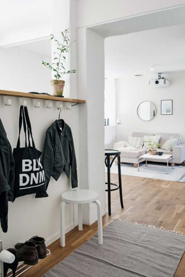 Однако для дизайна маленького коридора шкаф-купе не актуален. На его замену «приходит» пара крючков, зеркало на уровне глаз, небольшая обувница. Под зеркалом можно поместить полочку, тумбочку для мелочей, ключей и сумок.