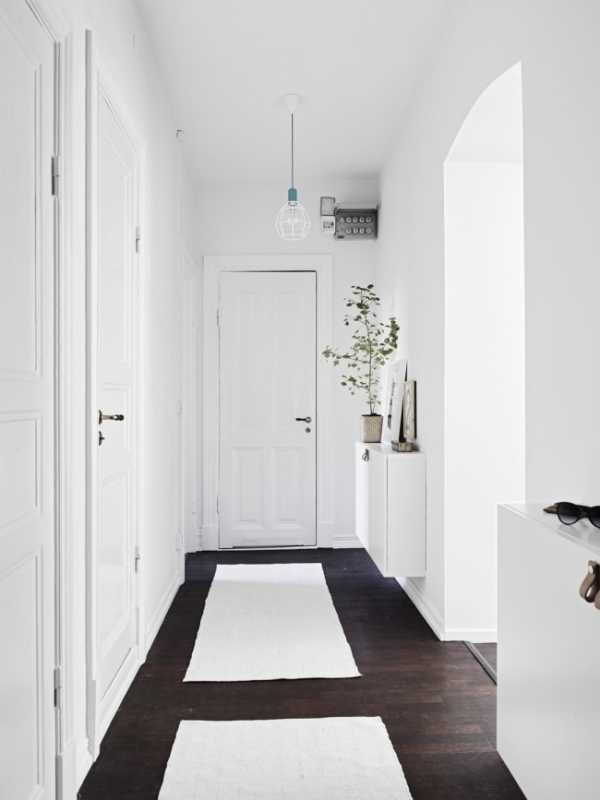 Идеальным цветовым решением для узкого коридора, не имеющего прямого источника света – это белый и все его оттенки. Но в таком случае большое внимание необходимо будет уделить оформлению стен, иначе коридор получиться скучным и малоинтересным.