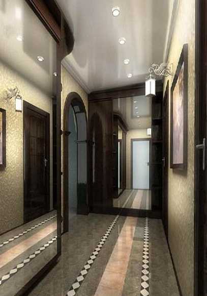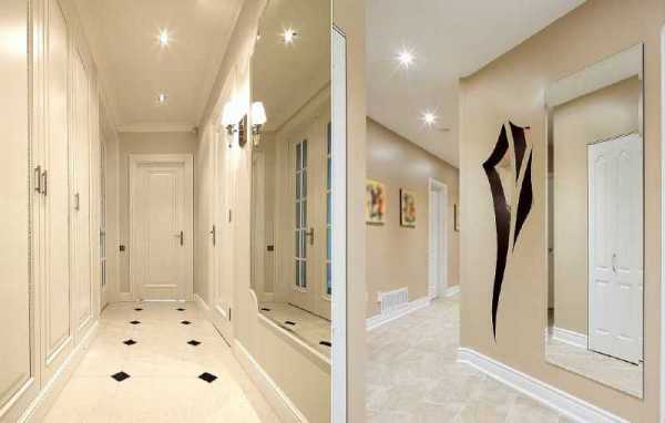 Фото: параллельно расположенные зеркала в интерьере узкого коридора