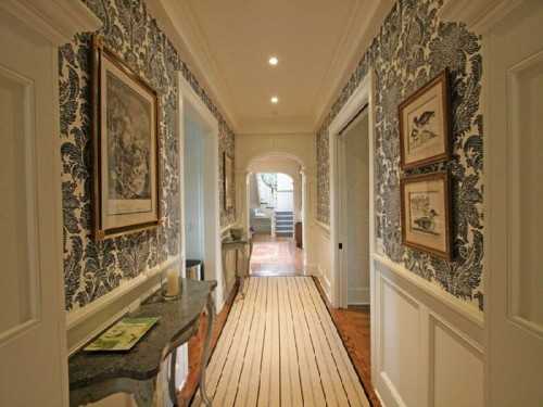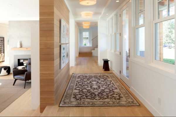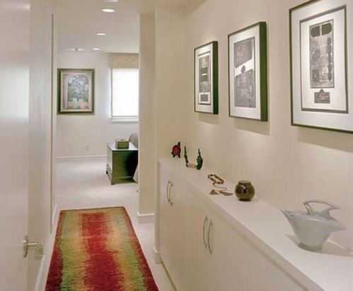 Некоторые советы по оформлению полов длинных узких помещений, ведущих в другие комнаты, в том числе в санузел и кухонный блок: