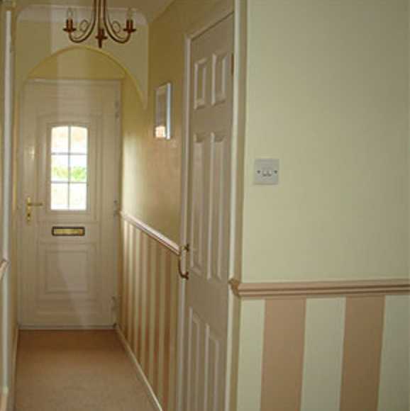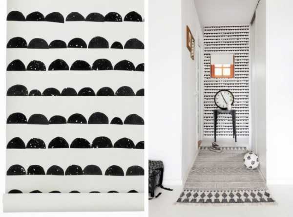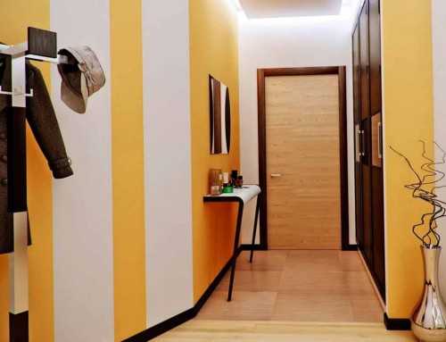 Для коридора подойдут моющиеся, виниловые обои, а также коридорные обои под покраску или стеклообои, которые допускают многократное перекрашивание. Не стоит брать обои с вертикальным орнаментом (полосами) – они оптически «приподнимают» потолок, зрительно делая коридор еще уже. А вот горизонтальная полоска, наоборот, визуально расширяет пространство. Для узкого коридора не подходят обои темных цветов и с крупным сложным рисунком или с большими цветами – все это делает и так небольшой коридор оптически еще меньше. В прихожую лучше выбрать обои с мелким рисунком или абстракцией. Последние особенно практичны – разводы будут скрадывать небольшие царапины или повреждения, мелкие пятна или грязь.