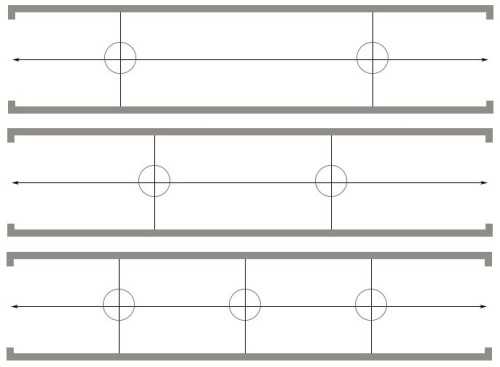 Для визуального расширения пространства вдоль одной стены устанавливают два или несколько зеркал. Противоположную сторону, как правило, оформляют картинами или художественной лепкой, нивелируя пространственный эффект пустоты.