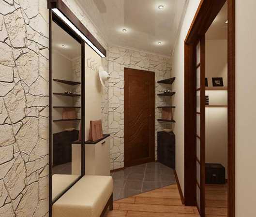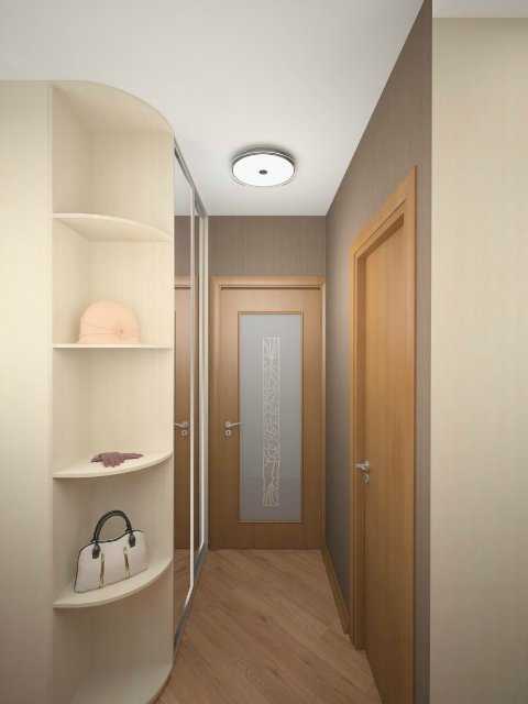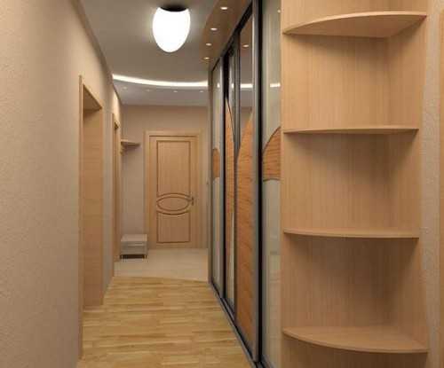 - функциональность – в коридоре можно разместить полочки или встроенные шкафы, шкафы-купе, чтобы «разгрузить» другие комнаты