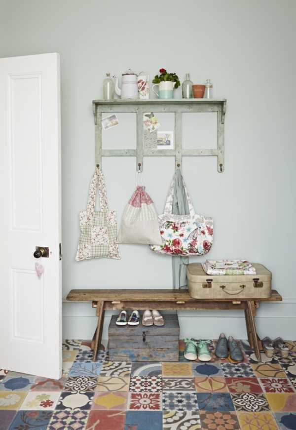 Яркая разноплановая орнаментальная плитка в коридоре у входных дверей разбавит настроение прихожей и будет очень практична при уборке пола