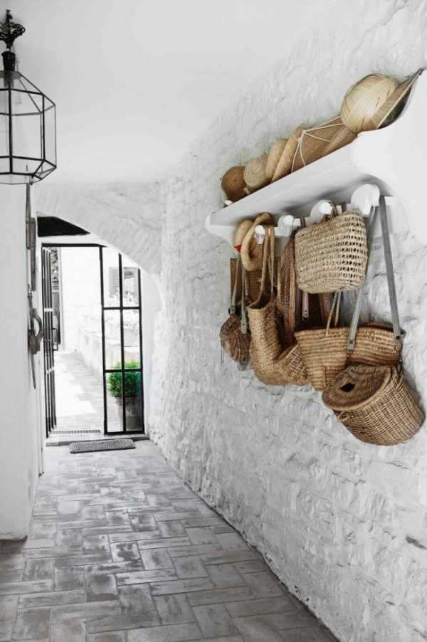 Очень атмосферный коридор в частном доме. Кирпичная кладка, покрашенная в белый, увеличивает имеющееся пространство