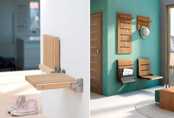 Оригинальное решение для маленького коридора — обустроить небольшую «нишу» для одежды с небольшой лавочкой для удобного обувания