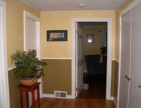 Их цветовое решение имеет первостепенное значение, особенно при отсутствии окон. Для стен выбирают нейтральные, пастельные тона. Чисто-белый цвет подойдёт, если интерьер оформлен в современном стиле (хай-тек, минимализм). В традиционных стилях применяют бледно-жёлтый цвет, бросающий свечение или нежно-розовый. В светлые оттенки окрашивают только длинные стороны, торцевые оформляют в ярких насыщенных красках, что визуально придаёт ей более гармоничную форму.