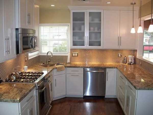 Мебель размешается вдоль трех основных стен, в итоге формируя собой букву «П». Такой вариант придется по вкусу далеко не всем, поскольку чтобы создать красивый интерьер в помещении с такой мебелью, нужно рассчитывать на достаточно большое пространство, иначе, вместо кухни вы получите, что-то наподобие «кубика-рубика»: вроде бы все есть, но в итоге ничего не понятно.